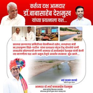 सांगोल्याचे आमदार डाॅ.बाबासाहेब देशमुख यांनी टेंभू व म्हैसाळ योजनेचे आवर्तन सुरु करुन माण व कोरडा नदीवरील बंधारे भरुन देण्याची मागणी कांही दिवसांपूर्वी राज्याचे जलसंपदा मंत्री राधाकृष्ण विखे-पाटील यांच्याकडे तसेच पुणे येथे झालेल्या कालवा सल्लागार समितीच्या बैठकीत आक्रमकपणे केलेली होती. आ.डाॅ.बाबासाहेब देशमुख यांनी केलेल्या या मागणीला यश आले असून टेंभू व म्हैसाळ योजनेचे आवर्तन सुरु झाले आहे.