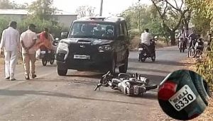 राज्याचे मुख्यमंत्री एकनाथ शिंदे यांचा बुधवारी वाढदिवस होता. वाढदिवसाच्या निमित्ताने नाझरा येथे आयोजित करण्यात आलेल्या आरोग्य शिबिरासाठी आ.शहाजीबापू पाटील हे गेले होते. आरोग्य शिबिराचा कार्यक्रम आटोपून आम.शहाजीबापू हे सांगोला शहराकडे येत असताना शहाजीबापू यांच्या वाहनापुढे पोलिसांचीही एक संरक्षक गाडी (क्र.एमएच १४/डी एम-९४४०) होती.गाड्यांचा ताफा हा माळवाडी-नाझरा (ता.सांगोला) येथे आला असता, पोलिसांच्या गाडीला समोरुन एक दुचाकीस्वार येवून धडकला आणि दुचाकीस्वार जागीच ठार झाला असून दुचाकीवरील दुसर्या एकाची प्रकृती चिंताजनक असल्याचे समजते.