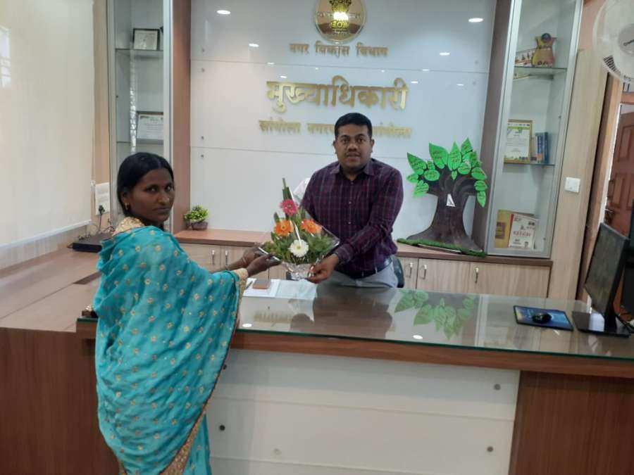 यावेळी सांगोला नगरपरिषदेचे मुख्याधिकारी डॉ.सुधीर गवळी यांच्या हस्ते महाराष्ट्रातून गुजरात दौऱ्यासाठी निवड झालेबाबत माता रमाई स्वयंसहायता बचत गटाच्या अध्यक्षा श्रीम.विद्या माणिक बनसोडे यांचा सत्कार करण्यात आला. याप्रसंगी सांगोला नगरपरिषदेचे कार्यालयीन अधीक्षक विजयकुमार कन्हेरे,सहा.प्रकल्प अधिकारी योगेश गंगाधरे, समुदाय संघटक बिराप्पा हाके, सचिव श्रीम.नैना होवाळ हे उपस्थित होते.